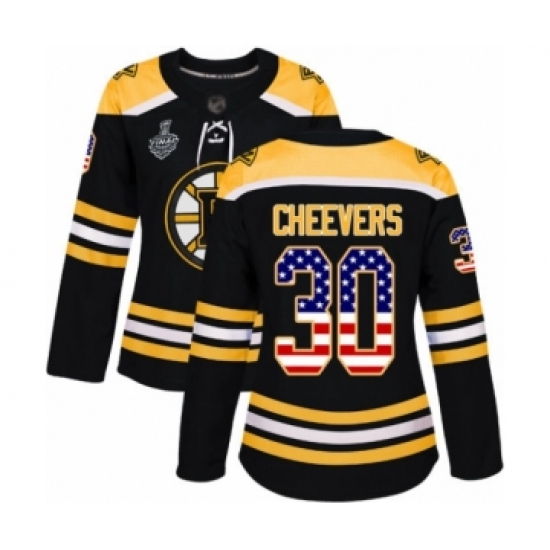 Women's Boston Bruins #30 Gerry Cheevers Authentic Black USA Flag Fashion 2019 Stanley Cup Final Bound Hockey Jersey