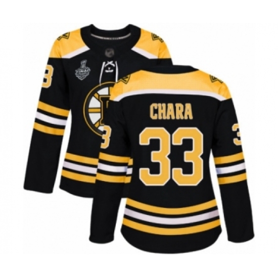 >Women's Boston Bruins #33 Zdeno Chara Authentic Black Home 2019 Stanley Cup Final Bound Hockey Jersey