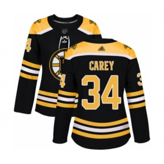 Women's Boston Bruins #34 Paul Carey Authentic Black Home Hockey Jersey