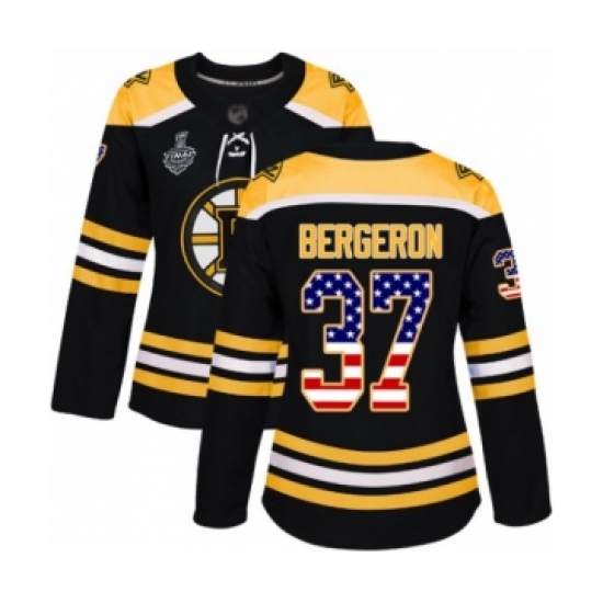 Women's Boston Bruins #37 Patrice Bergeron Authentic Black USA Flag Fashion 2019 Stanley Cup Final Bound Hockey Jersey