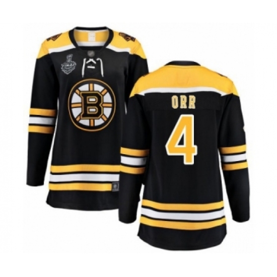 >Women's Boston Bruins #4 Bobby Orr Authentic Black Home Fanatics Branded Breakaway 2019 Stanley Cup Final Bound Hockey Jersey