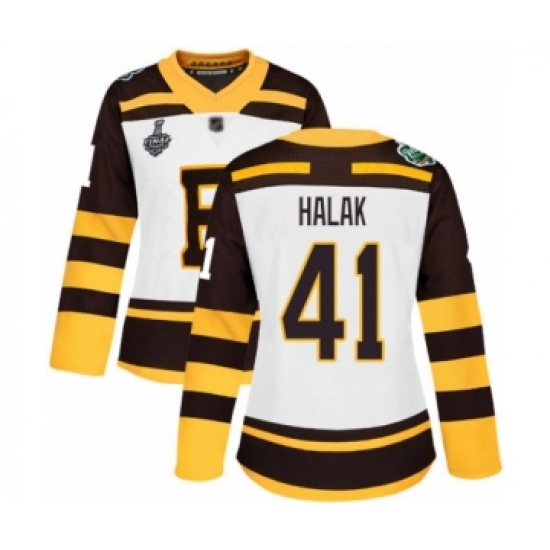 Women's Boston Bruins #41 Jaroslav Halak Authentic White Winter Classic 2019 Stanley Cup Final Bound Hockey Jersey