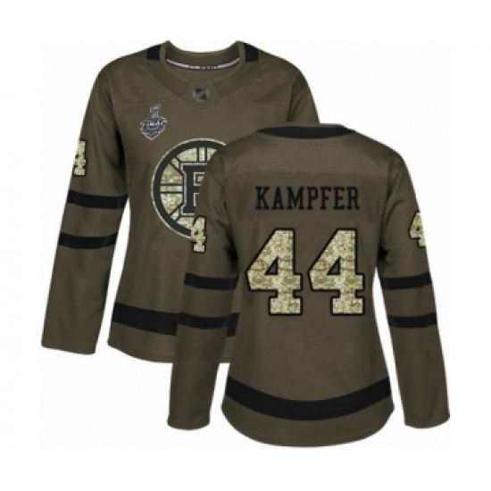 Women's Boston Bruins #44 Steven Kampfer Authentic Green Salute to Service 2019 Stanley Cup Final Bound Hockey Jersey