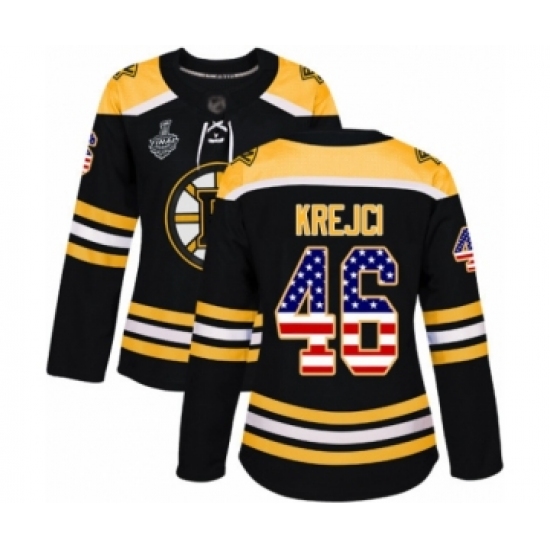 Women's Boston Bruins #46 David Krejci Authentic Black USA Flag Fashion 2019 Stanley Cup Final Bound Hockey Jersey