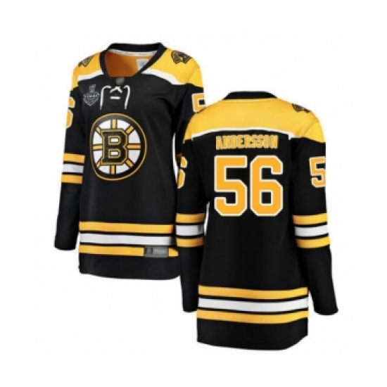 >Women's Boston Bruins #56 Axel Andersson Authentic Black Home Fanatics Branded Breakaway 2019 Stanley Cup Final Bound Hockey Jersey