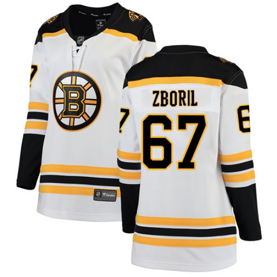 Home>NHL>Boston Bruins>Jakub Zboril>Women's Boston Bruins #67 Jakub Zboril Authentic White Away Fanatics Branded Breakaway NHL Jersey
