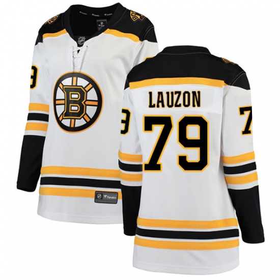Home>NHL>Boston Bruins>Jeremy Lauzon>Women's Boston Bruins #79 Jeremy Lauzon Authentic White Away Fanatics Branded Breakaway NHL Jersey
