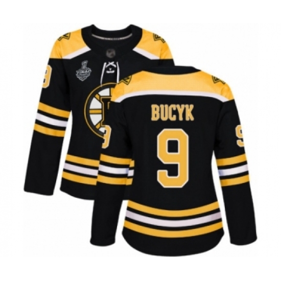 Women's Boston Bruins #9 Johnny Bucyk Authentic Black Home 2019 Stanley Cup Final Bound Hockey Jersey