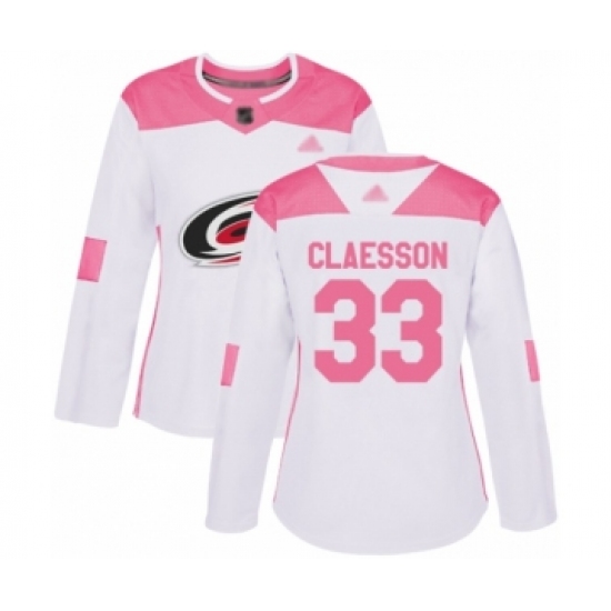Women's Carolina Hurricanes #33 Fredrik Claesson Authentic White Pink Fashion Hockey Jersey