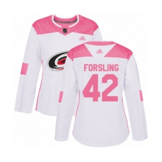Women's Carolina Hurricanes #42 Gustav Forsling Authentic Whit Pink Fashion Hockey Jersey
