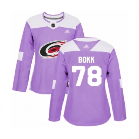 Women's Carolina Hurricanes #78 Dominik Bokk Authentic Purple Fights Cancer Practice Hockey Jersey