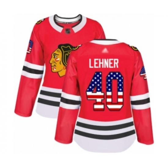 >Women's Chicago Blackhawks #40 Robin Lehner Authentic Red USA Flag Fashion Hockey Jersey