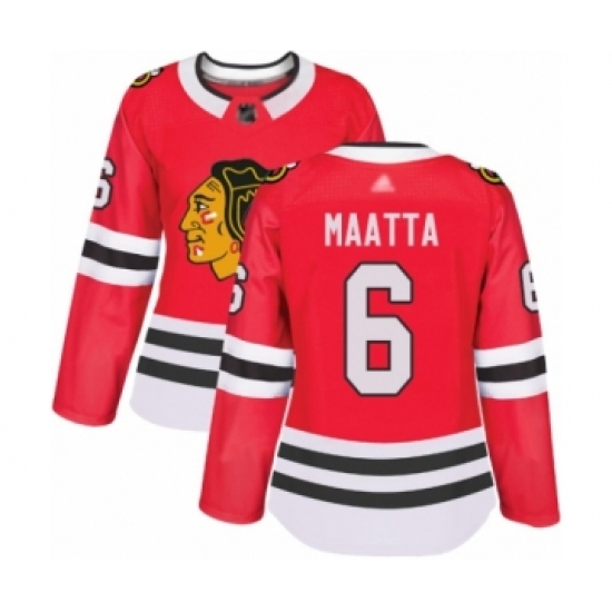 Women's Chicago Blackhawks #6 Olli Maatta Authentic Red Home Hockey Jersey