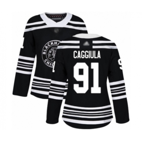 Women's Chicago Blackhawks #91 Drake Caggiula Authentic Black Alternate Hockey Jersey