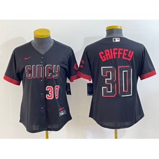 Women's Cincinnati Reds #30 Ken Griffey Jr Black 2023 City Connect Cool Base Stitched Jersey1