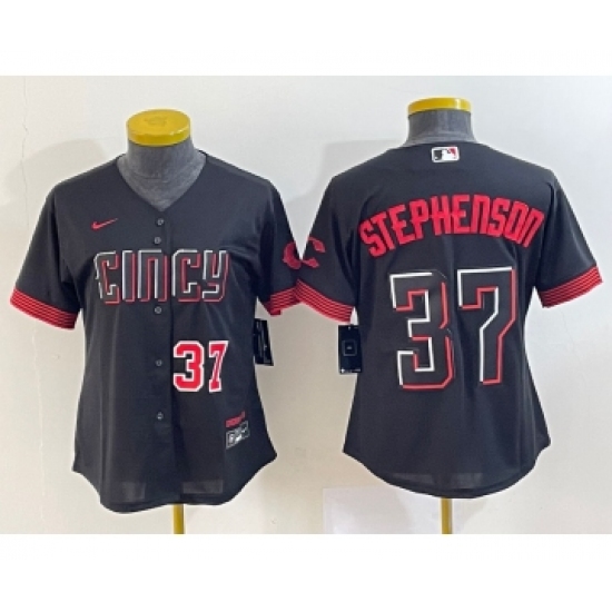 Women's Cincinnati Reds #37 Tyler Stephenson Black 2023 City Connect Cool Base Stitched Jersey1