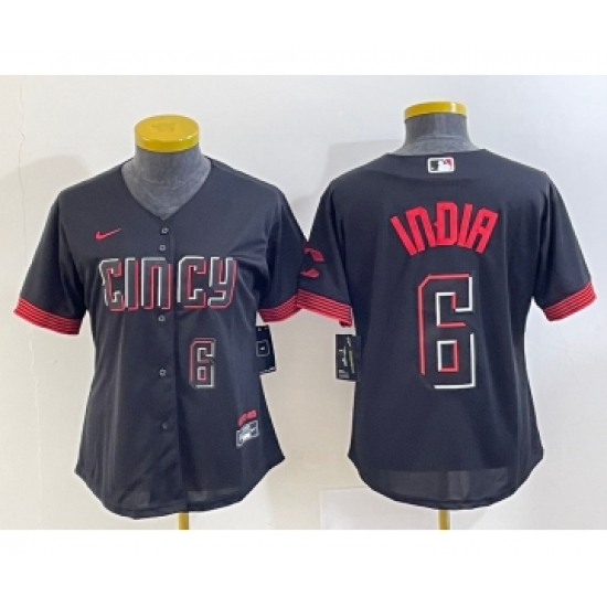 Women's Cincinnati Reds #6 Jonathan India Number Black 2023 City Connect Cool Base Stitched Jersey 1