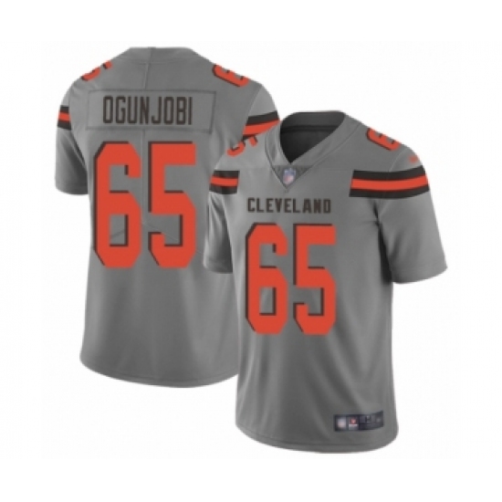 >Women's Cleveland Browns #65 Larry Ogunjobi Limited Gray Inverted Legend Football Jersey