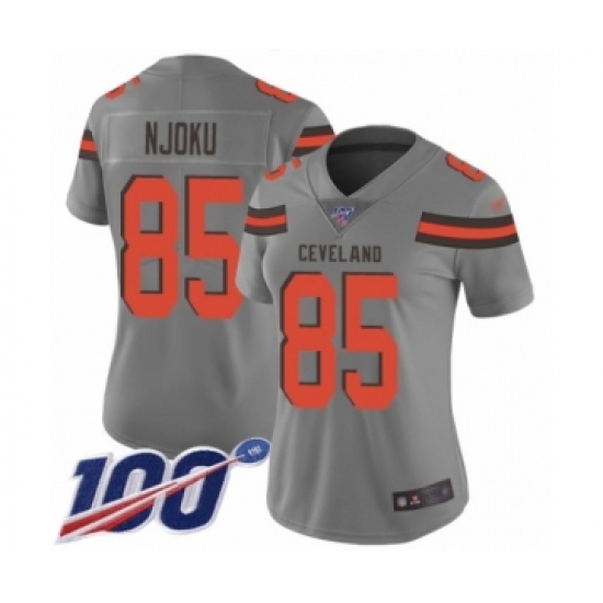 Women's Cleveland Browns #85 David Njoku Limited Gray Inverted Legend 100th Season Football Jersey