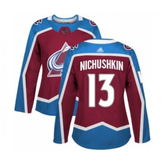 Women's Colorado Avalanche #13 Valeri Nichushkin Authentic Burgundy Red Home Hockey Jersey