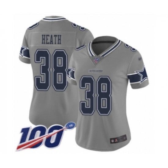 >Women's Dallas Cowboys #38 Jeff Heath Limited Gray Inverted Legend 100th Season Football Jersey