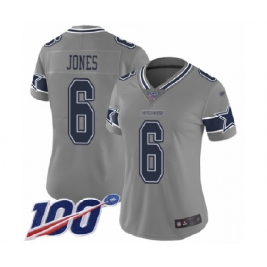 >Women's Dallas Cowboys #6 Chris Jones Limited Gray Inverted Legend 100th Season Football Jersey