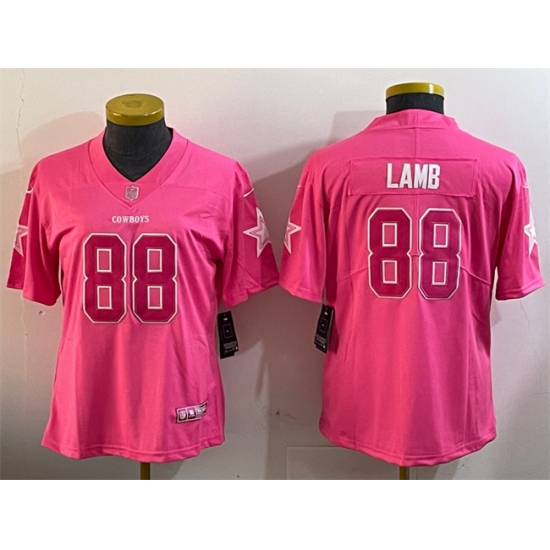Women's Dallas Cowboys #88 CeeDee Lamb Pink Vapor Untouchable Limited Stitched Football Jersey(Run Small)