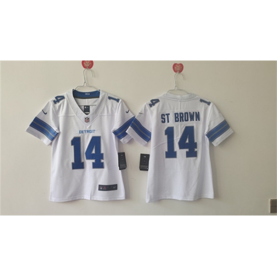 Women's Detroit Lions #14 Amon-Ra St. Brown White Vapor Football Stitched Jersey(Run Smaller)