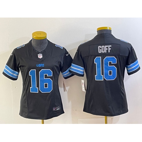 >Women's Detroit Lions #16 Jared Goff Black 2024 F.U.S.E. 2nd Alternate Vapor Limited Football Stitched Jersey(Run Smaller)