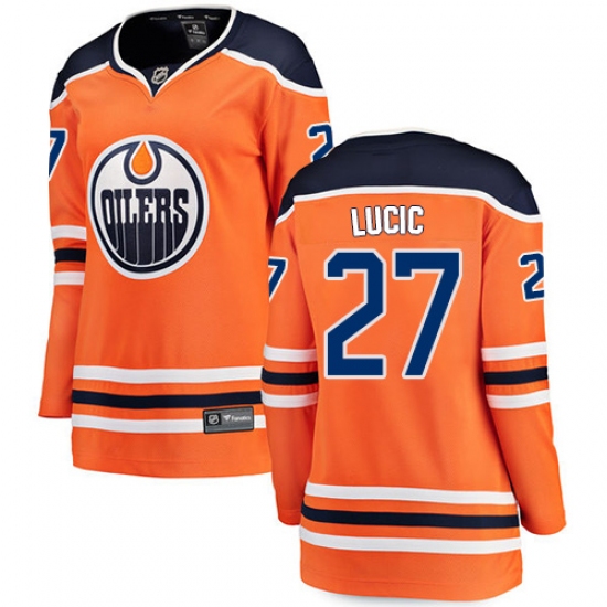 Home>NHL>Edmonton Oilers>Milan Lucic>Women's Edmonton Oilers #27 Milan Lucic Fanatics Branded Orange Home Breakaway NHL Jersey
