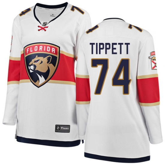 Home>NHL>Florida Panthers>Owen Tippett>Women's Florida Panthers #74 Owen Tippett Authentic White Away Fanatics Branded Breakaway NHL Jersey