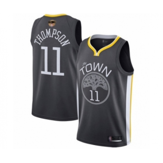 >Women's Golden State Warriors #11 Klay Thompson Swingman Black 2019 Basketball Finals Bound Basketball Jersey - Statement Edition