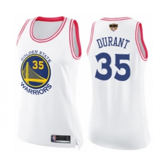 >Women's Golden State Warriors #35 Kevin Durant Swingman White Pink Fashion 2019 Basketball Finals Bound Basketball Jersey