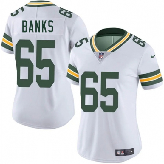 Women's Green Bay Packers #65 Aaron Banks White 2025 Vapor Untouchable Limited Football Stitched Jersey(Run Small)