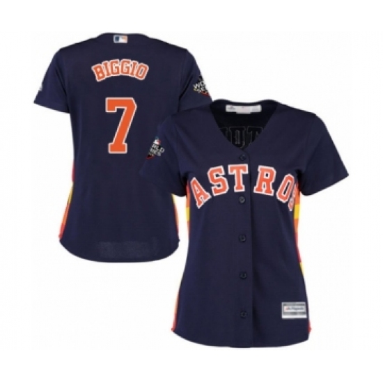 >Women's Houston Astros #7 Craig Biggio Authentic Navy Blue Alternate Cool Base 2019 World Series Bound Baseball Jersey