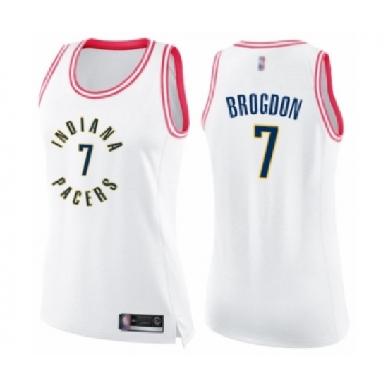 >Women's Indiana Pacers #7 Malcolm Brogdon Swingman White Pink Fashion Basketball Jersey