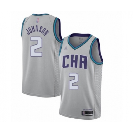Women's Jordan Charlotte Hornets #2 Larry Johnson Swingman Gray Basketball Jersey - 2019 20 City Edition