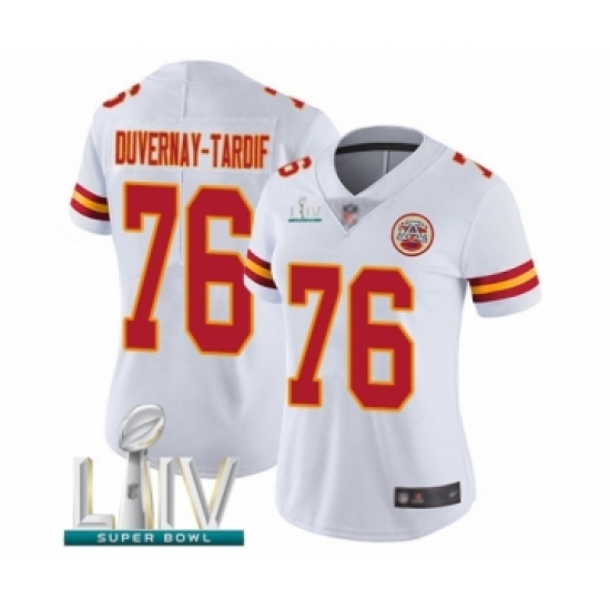 >Women's Kansas City Chiefs #76 Laurent Duvernay-Tardif White Vapor Untouchable Limited Player Super Bowl LIV Bound Football Jersey