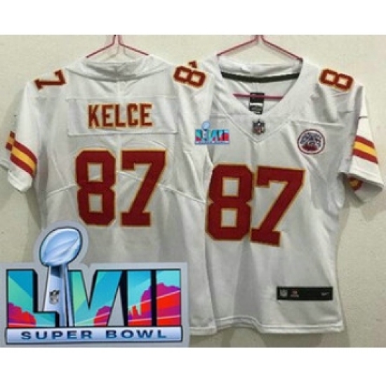 Women's Kansas City Chiefs #87 Travis Kelce Limited White Super Bowl LVII Vapor Jersey