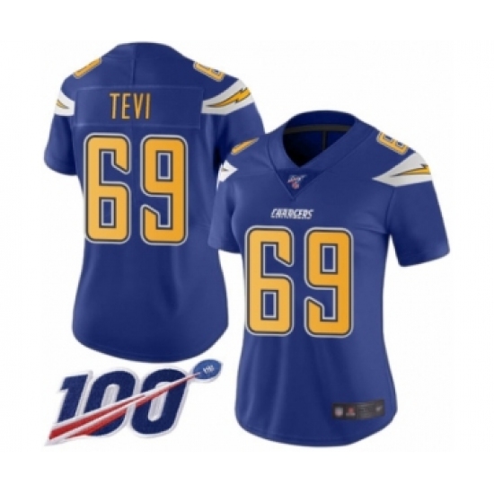 Women's Los Angeles Chargers #69 Sam Tevi Limited Electric Blue Rush Vapor Untouchable 100th Season Football Jersey