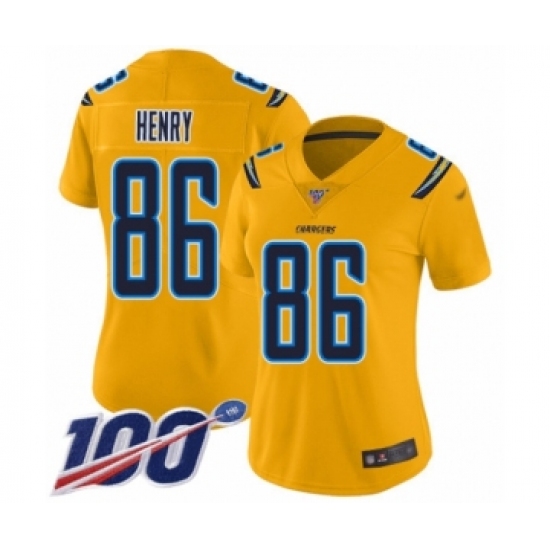 Women's Los Angeles Chargers #86 Hunter Henry Limited Gold Inverted Legend 100th Season Football Jersey