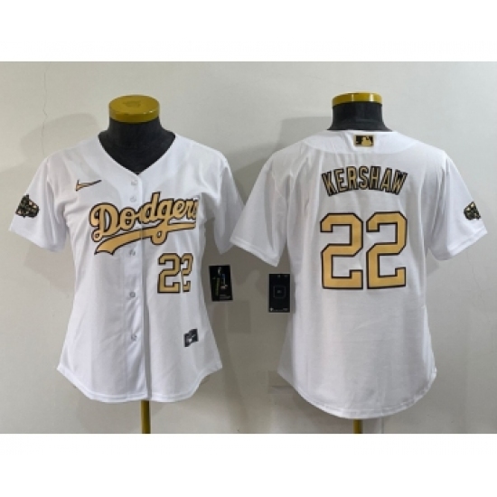 Women's Los Angeles Dodgers #22 Clayton Kershaw Number White 2022 All Star Stitched Cool Base Nike Jersey