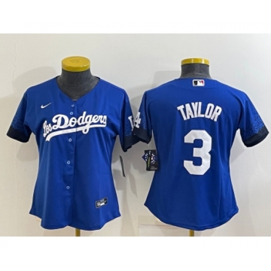 >Women's Los Angeles Dodgers #3 Chris Taylor Blue 2022 Cool Base Stitched Nike Jersey