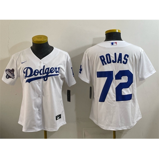 Women's Los Angeles Dodgers #72 Miguel Rojas White 2025 World Series Champions Home Cool Base Stitched Baseball Jersey(Run Small)