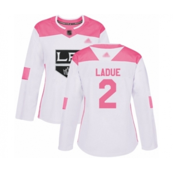 Women's Los Angeles Kings #2 Paul LaDue Authentic White Pink Fashion Hockey Jersey