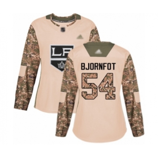 Women's Los Angeles Kings #54 Tobias Bjornfot Authentic Camo Veterans Day Practice Hockey Jersey