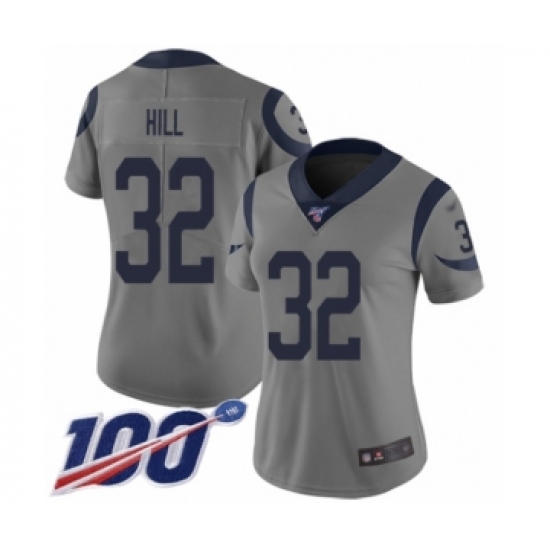 >Women's Los Angeles Rams #32 Troy Hill Limited Gray Inverted Legend 100th Season Football Jersey