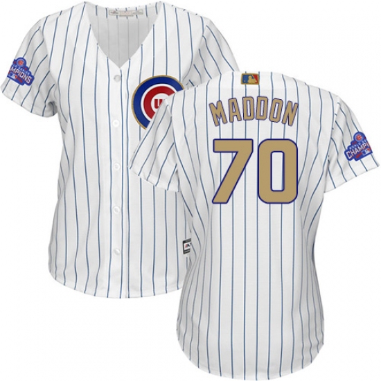 Women's Majestic Chicago Cubs #70 Joe Maddon Authentic White 2017 Gold Program MLB Jersey