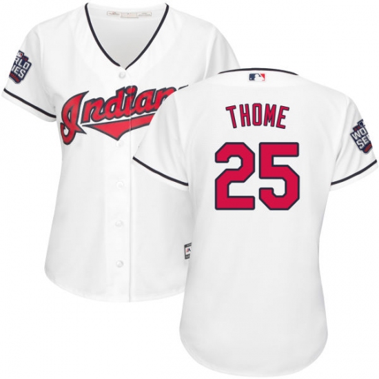 Home>MLB>Cleveland Indians>Jim Thome>Women's Majestic Cleveland Indians #25 Jim Thome Authentic White Home 2016 World Series Bound Cool Base MLB Jersey