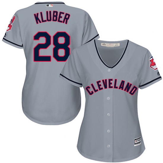 Women's Majestic Cleveland Indians #28 Corey Kluber Authentic Grey Road Cool Base MLB Jersey